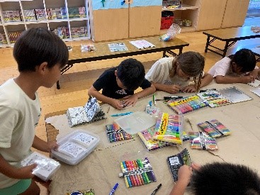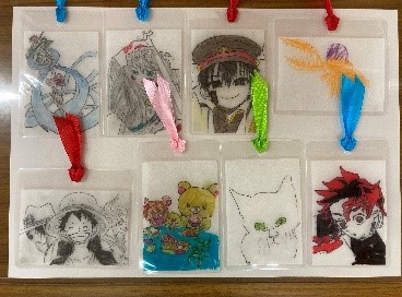 「コレおじいちゃんにあげる」「おばあちゃん猫好きだから猫の絵」とおじいさんやおばあさんの事を想いながら絵を描き、ラミネートすると可愛い栞の出来上がり!「土曜日会いに行くからあげるんだ!」などと楽しみにしていました。津波警報発令時お世話になったパシフィックステージの皆さんにもプレゼントし、喜んでいただきました。