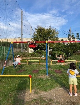 今年の夏は大変暑く、6月中旬から「厳重警戒」の日が続き、外遊びに行けませんでした。9月になれば涼しくなるかと思いきや残暑が厳しく、中旬過ぎやっと厳重警戒以下になると、待ってましたと子どもたちは大喜びで校庭に飛び出しました。ドッジボールや遊具で思い切り身体を動かしています。